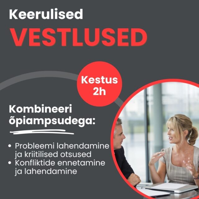 Kas meeskonnas tuleb ette vestlusi, mida lükatakse aina edasi, sest need tunduvad liiga ebamugavad? Selles praktilise lühikoolituse käigus õpitakse, kuidas keerulisi vestlusi rahulikult ja eesmärgipäraselt juhtida.