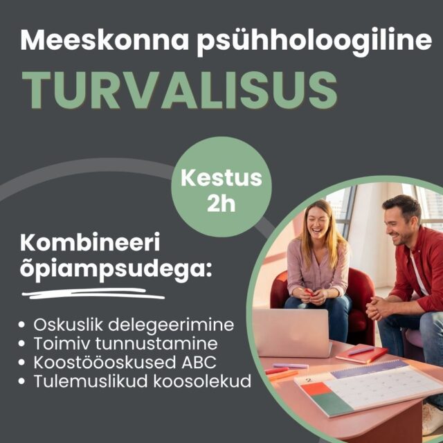 Kas inimesed vaikivad koosolekul, kuigi neil on mõtteid? Selles praktilise lühikoolituse käigus õpitakse, kuidas luua meeskonnale keskkond ja kultuur, kus inimesed julgevad kaasa mõelda, küsida ja ausalt kaasa rääkida.