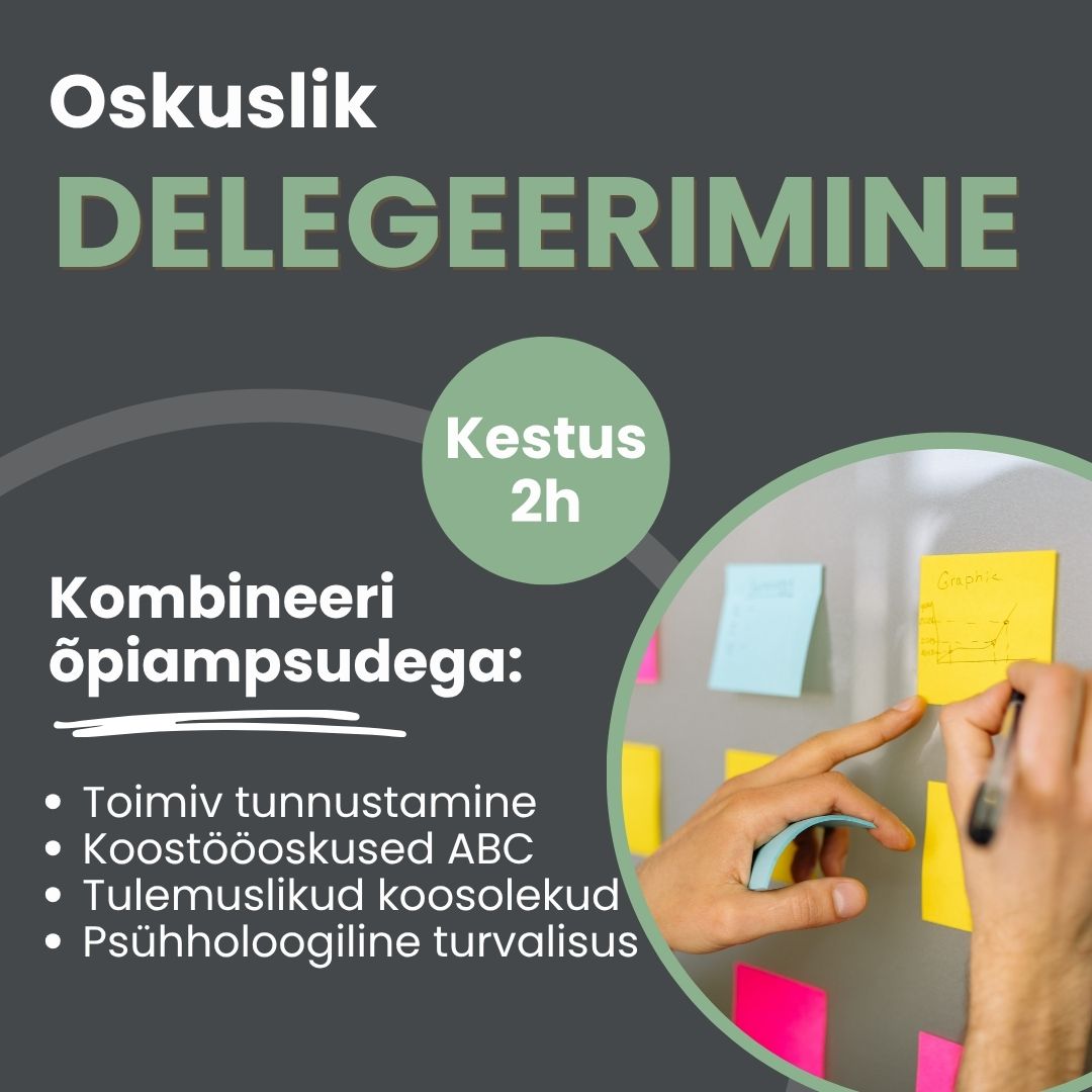 Delegeerimine ei tähenda lihtsalt töö ära andmist. See on oskus luua selgus vastutuses, ootustes ja toetuses. Kui delegeerimine on tehtud hästi, kasvab meeskonna iseseisvus, otsused tehakse kiiremini ja inimesed võtavad oma töö eest rohkem vastutust. Selle praktilise lühikoolituse käigus õpitakse, kuidas jagada ülesandeid nii, et kogu meeskond toimib selgemalt ja tõhusamalt.